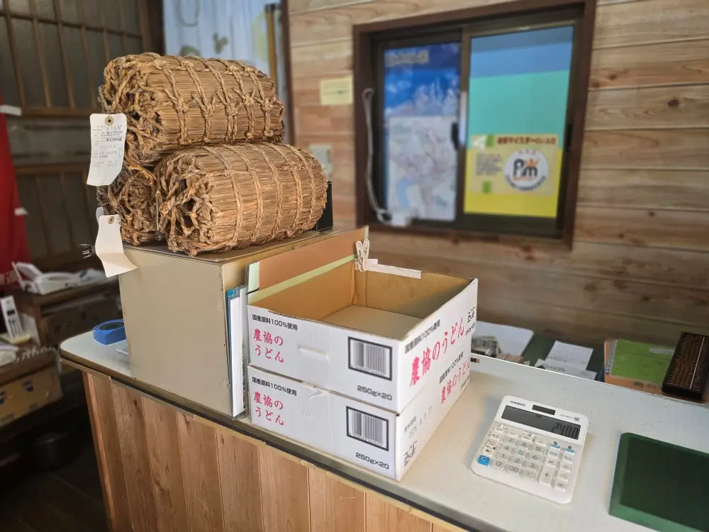 이 쌀가게의 카운터 한쪽에는 둥근 바구니처럼 생긴 전통 쌀포대 타와라(俵)가 놓여 있었습니다. 저도 처음 보는 거라 처음엔 뭔지 몰랐습니다.